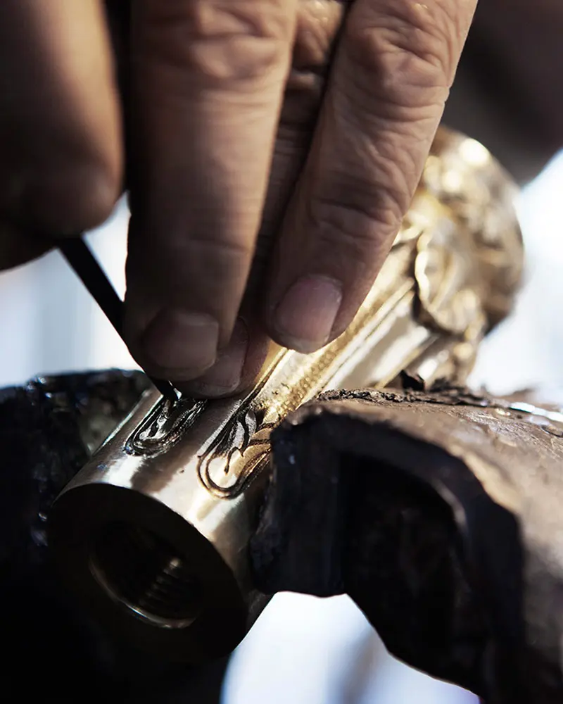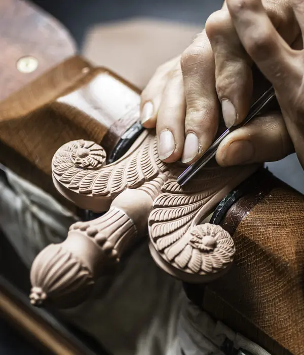Dexterity, attention to detail and delicacy are required for safe, precise, and impeccable movements. From the first sketch prepared by our designer-sculptor on wood to the polishing stage using sandpaper, precision is an essential factor. The same rules apply when an engraver combines shading and relief to create an effect. And when a technician combines two parts, they must match perfectly. This quest for perfection even applies to our packaging, where black tissue paper protects each of our creations when placed in a perfectly-sized white box ready for delivery.