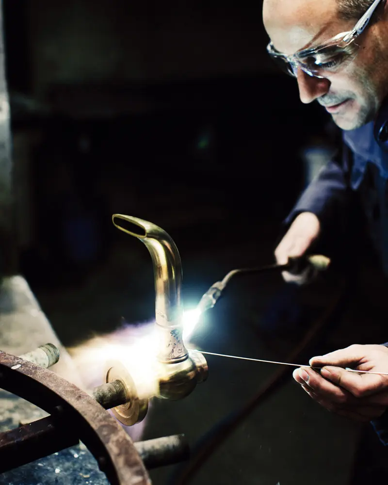The Tully workshops employ around fifty craftsmen in several different trades, but they all complement each other. These professions include sculptors, engravers, welders, lathe-operators, millers, benders, assembly-workers, polishers, foundrymen, quality controllers, order-preparation workers or even stockkeepers. Their common point is an ability to know how to react to any situation, coupled with flexibility and adaptation. Adaptation to specific customer expectations and adaptation according to the standards set out in the country where the object we produce will be installed. Whether it be positions, heights, curves, shapes, spouts, deck mountings, overhangs, connectors, or other filtering systems for faucets, everything can be worked out and designed according to a customer’s specification.